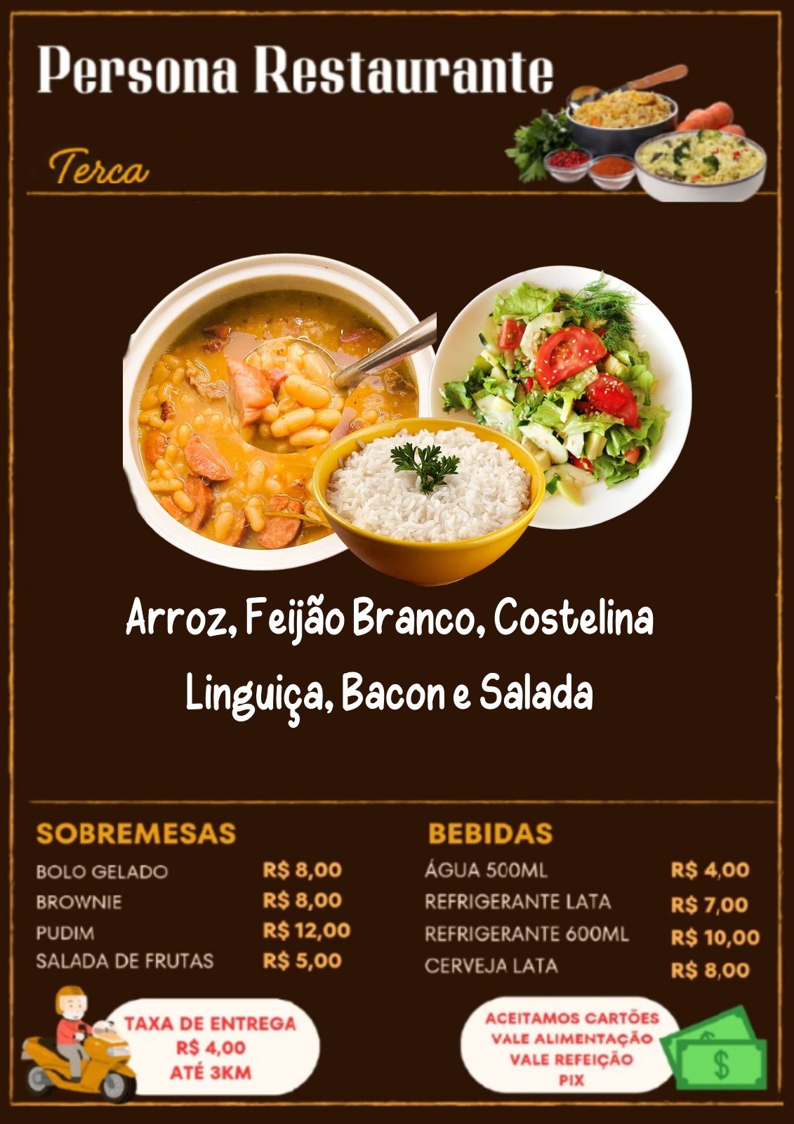 Arroz, Feijão Branco, Costelinha, Linguiça, Bacon e Salada